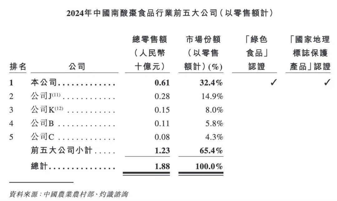齐云山食品虽在南酸枣食品领域以32.4%的份额排名行业第一,但在整个果类零食市场中的地位并不突出,以0.6%的市场份额排名第9,且该公司还面临着产品结构单一、销售渠道失衡、产能闲置超20%等一系列经营挑战。