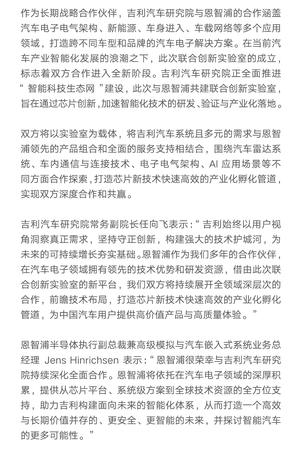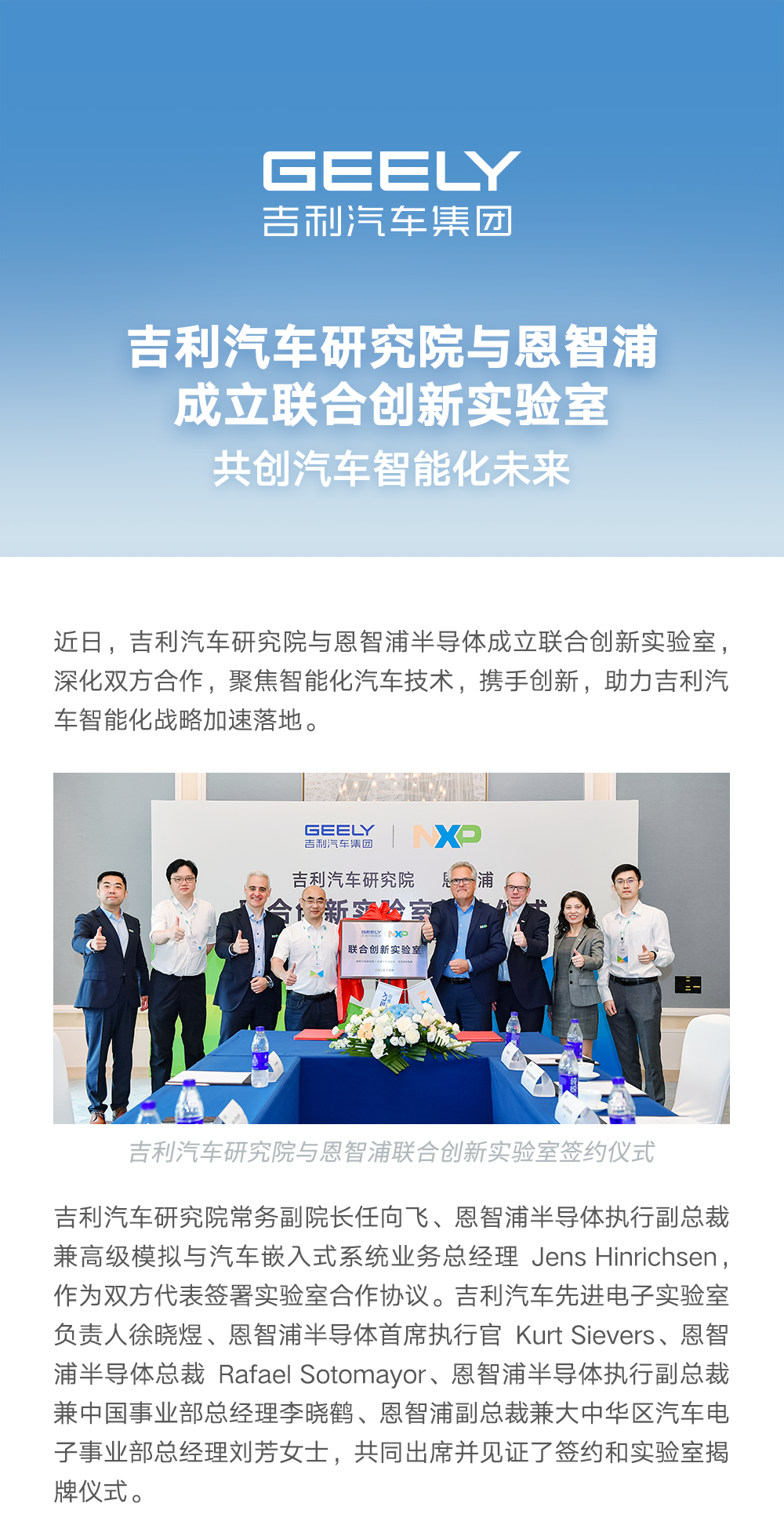 吉利汽车研究院与恩智浦成立联合创新实验室|共创汽车智能化未来