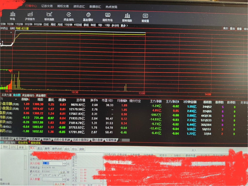 早上买入近三百万元,板上抢了五百多个W,后悔买少了,现在赢利11万多元,坐等庄家明天一字板,连十个板。