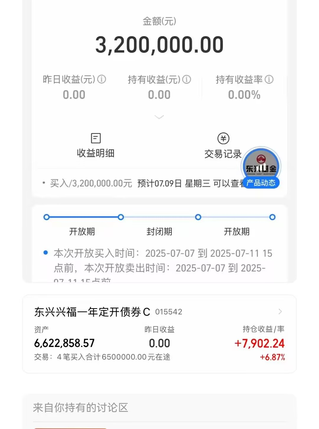 就在昨天,东兴基金的司马义买买提经理的代表作$东兴兴福一年定开债券A(OTCFUND|007091)$券被土豪们一扫而空。本来预计开放一周的,现在只用了一天,这场面堪比苏超门票的热度。