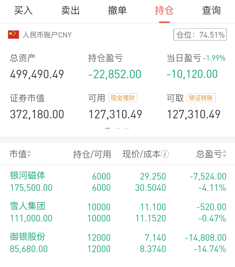 $雪人集团(SZ002639)$ 持股第3天 目前 亏损-520