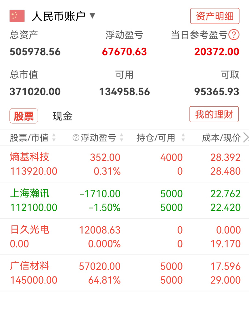 $广信材料(SZ300537)$ 持股10天 累积 盈利+57020