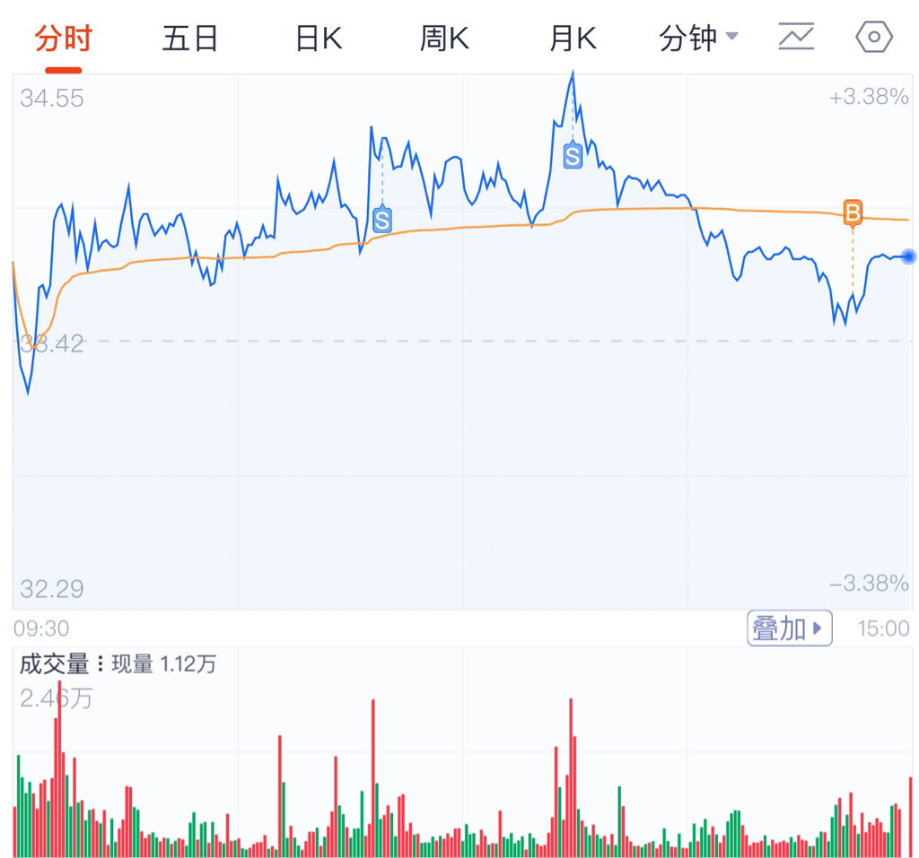 一是如何利润最大化:以目前的市场节奏,轮动节奏过快,除非上涨加速的大牛股,像恒生这种扭扭捏捏的走法,适合底仓不动,用活钱做T扩大利润。本人今日做了两次T,第一次34.28卖出,将4号加仓部分兑现,盈利3.13%;第二次34.50高点卖出,尾盘33.64接回,盈利2.56%。所以对于我来说,反而喜欢这样的振幅。