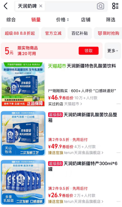 图片说明:天润奶啤,数据来源于天猫APP
