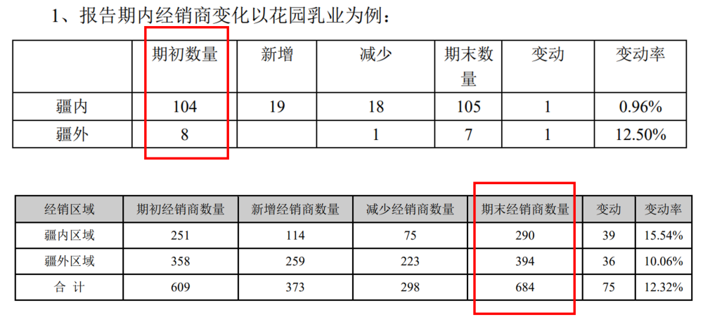 图片说明:上红框为2019年经销商数量,下红框为2024年经销商数量,数据来源于公司年报