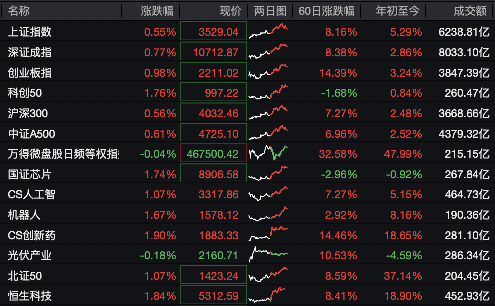板块来看,稀土、券商、有色纷纷走强,小财重仓的大科技(半导体、AI、机器人)、创新药终于没掉队,均大幅反弹。