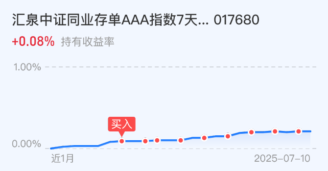 市场行情不错,不过,稳健资产也得留足仓位,最近慢慢上车的汇泉同业存单,就像我的 “资金安全垫”,底层是高等级同业存单,风险低、波动小,特别适合稳健投资。