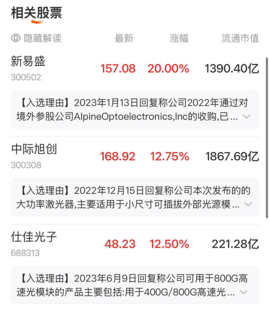$新易盛(SZ300502)$$中际旭创(SZ300308)$$仕佳光子(SH688313)$