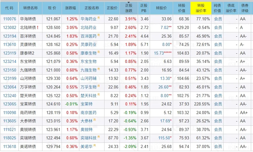 这里整理120元及以下,120元-130元的医药可转债供大家参考(点击放大):