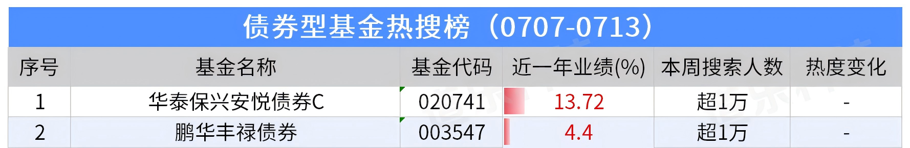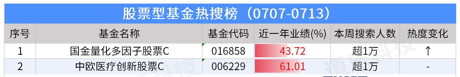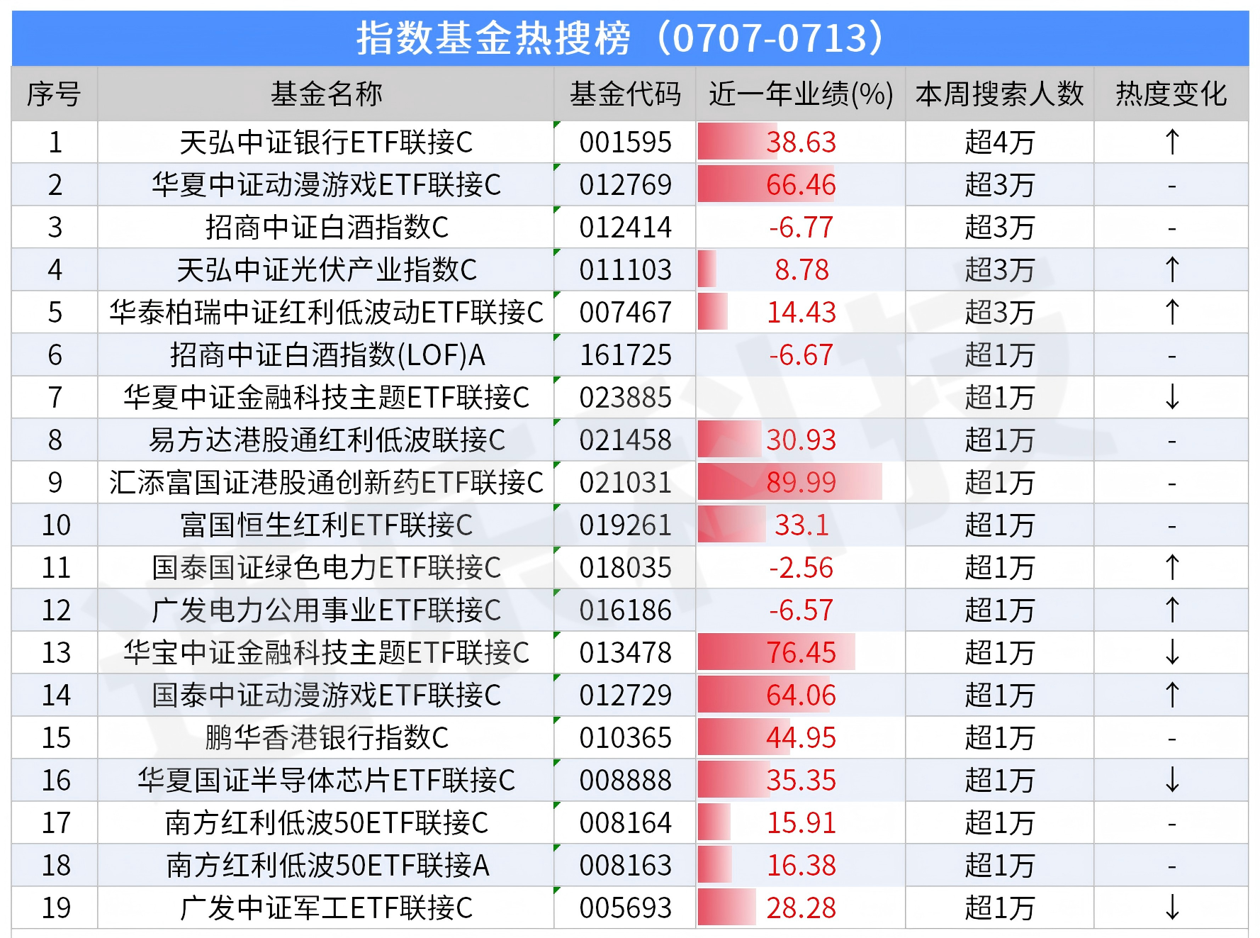 同等级搜索量产品以基金代码降序排列;“热度变化”是与前一周做对比;