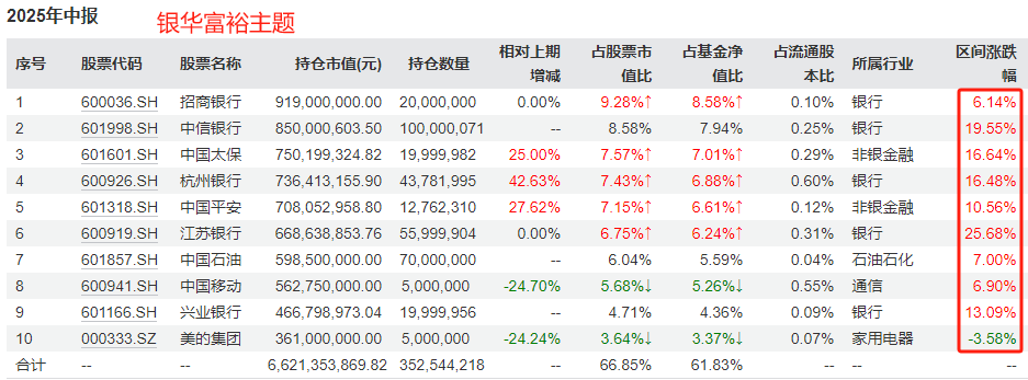 焦巍继续重仓银行、保险等价值板块,整体调仓幅度也不大,二季度十大重仓股9涨1跌,平均涨11.85%。