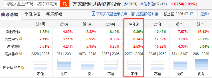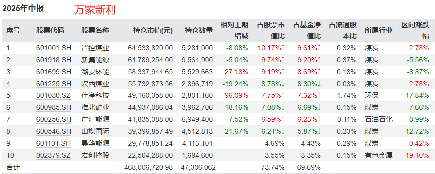 黄海重仓煤炭,今年煤炭表现倒数第一,“万家新利”跌了9.36%,同类后2%了。