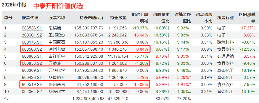 持仓上,茅台、五粮液、泸州老窖,田瑀都买了,仓位合计23.11%。