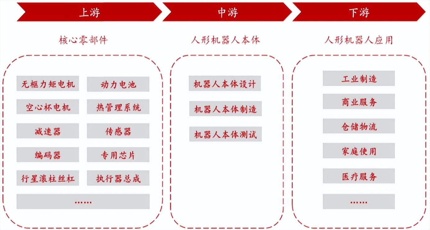 将上游零部件集成为完整的人形机器人,就是中游人形机器人公司要做的事。