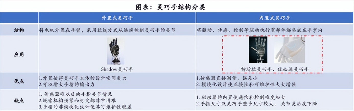 灵巧手属于末端执行器,其一般也有传感器、电机、减速器、丝杠,以完成感知、驱动和传动功能。