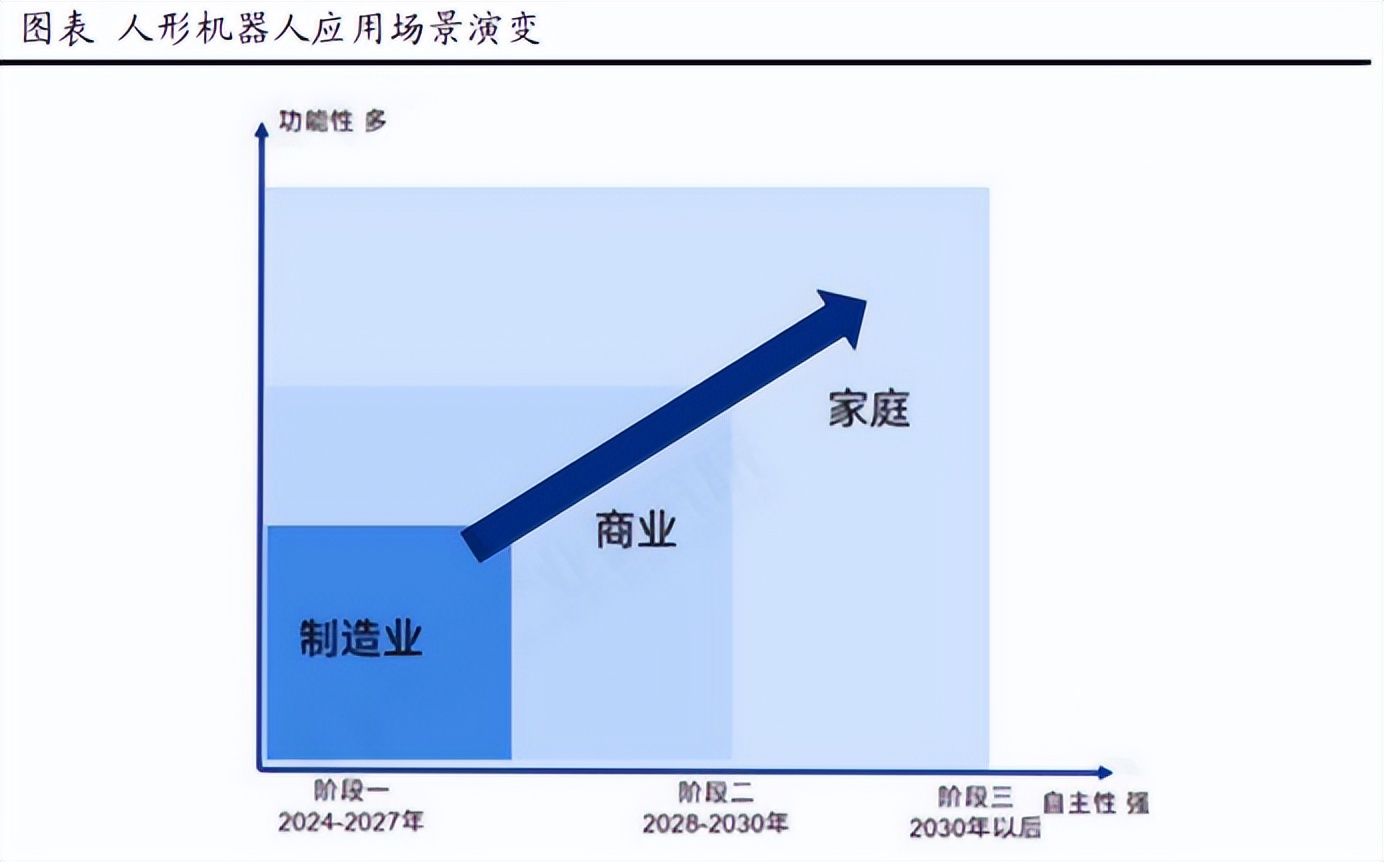 当前,人形机器人正经历由实验室走向初步商业化应用的阶段,应用场景有望呈现从工业制造到商业再到家庭的转变。