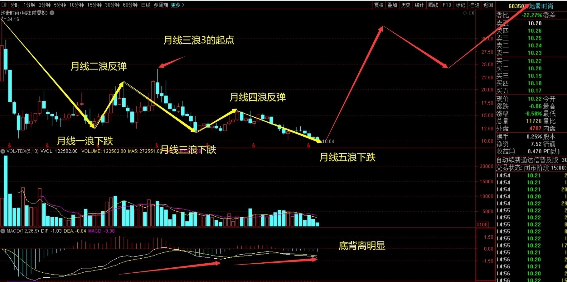技术面:月线五浪下跌,周线五浪下跌,日线五浪下跌,都已经出现背离,月线上涨趋势要开启了,对于大资金来说这是好消息