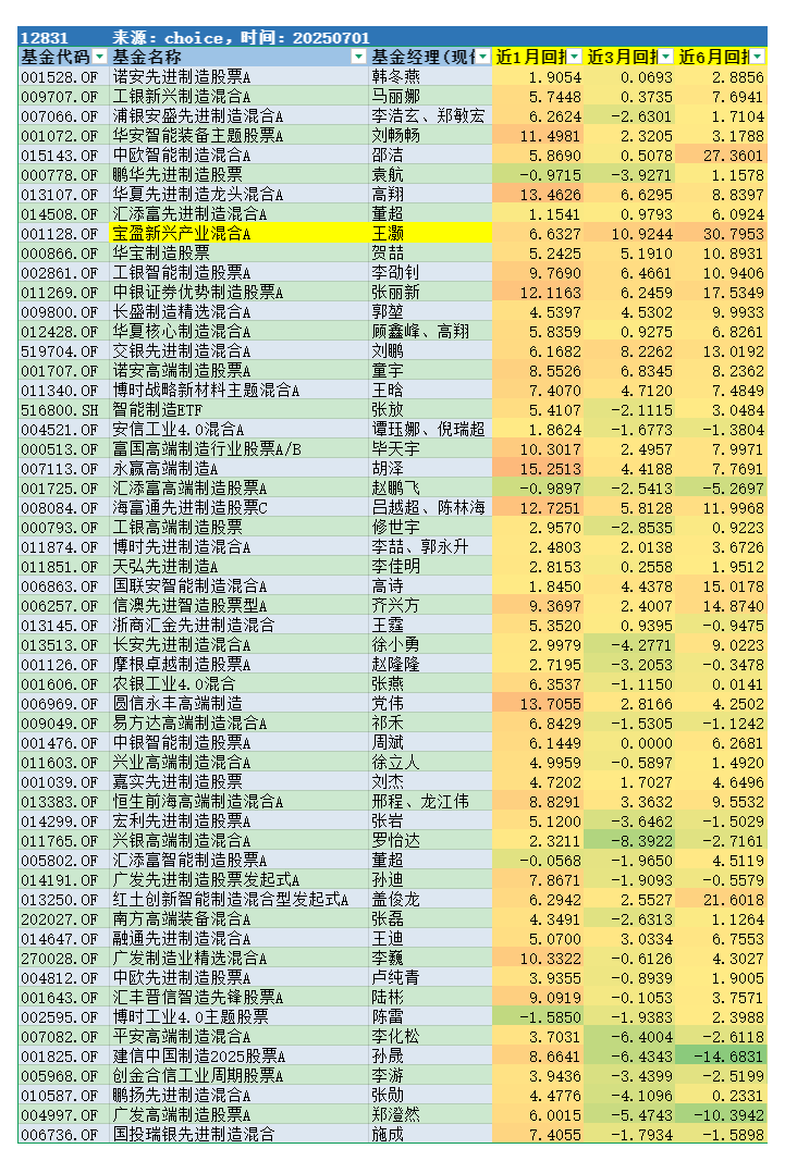 第二个问题是同类比较。宝盈新兴产业是主投制造行业的,在制造品类当中,剔除业绩不满3年的产品后,宝盈新兴产业的近6个月累计收益是最高的,相对比较还是不错的。