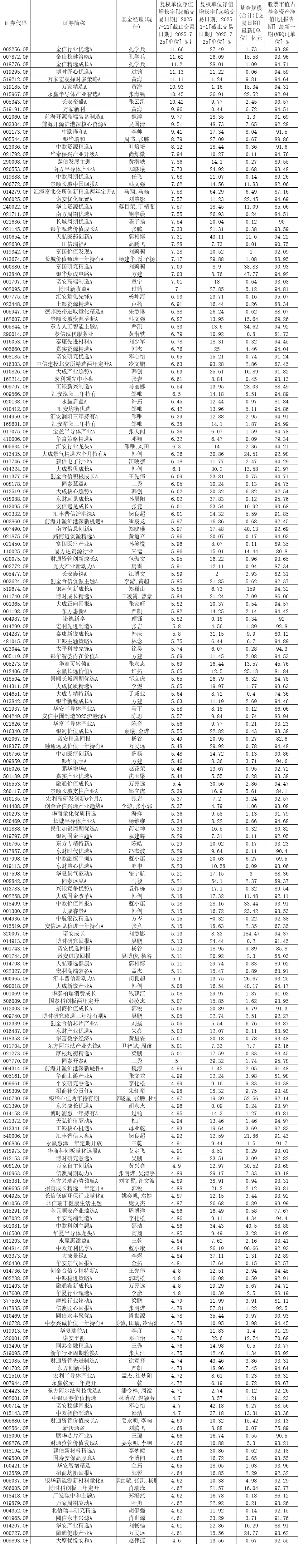 三、基金涨幅榜(仅统计规模1亿元以上最新一期股票占比超过40%的主动基金)