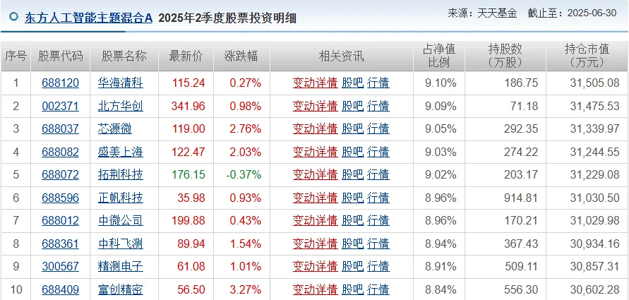 东方人工智能重仓半导体。