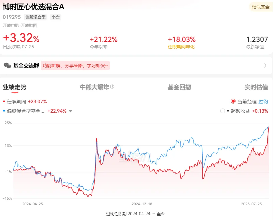 过均也有一只权益基金。博时匠心优选混合在7月24日和25日累计涨8.49%。只有半导体基金可以媲美。可能调仓换股了。