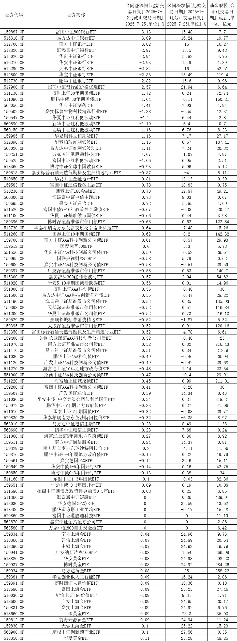 二、ETF涨跌