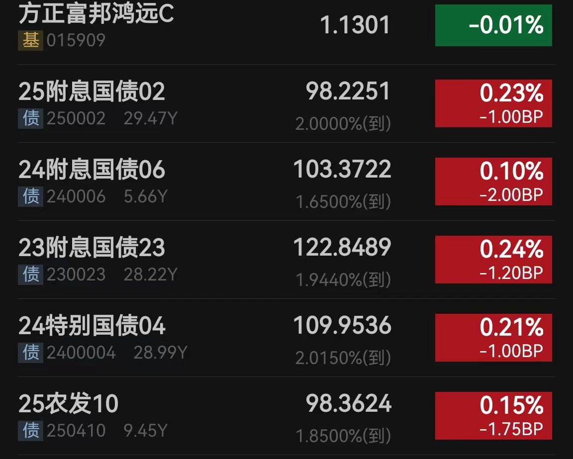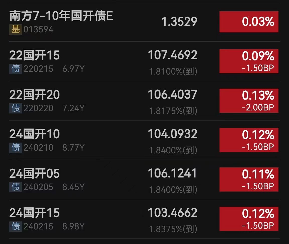 债市: 利率债又拉升了一些、今天应该能稳住哈、不知道下午三点后会不会有惊喜在拉升一下、今天债的小伙伴终于迎来了吃肉的一天了、恭喜恭喜。