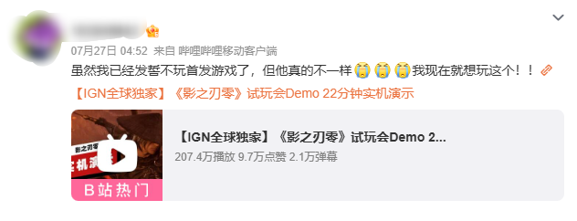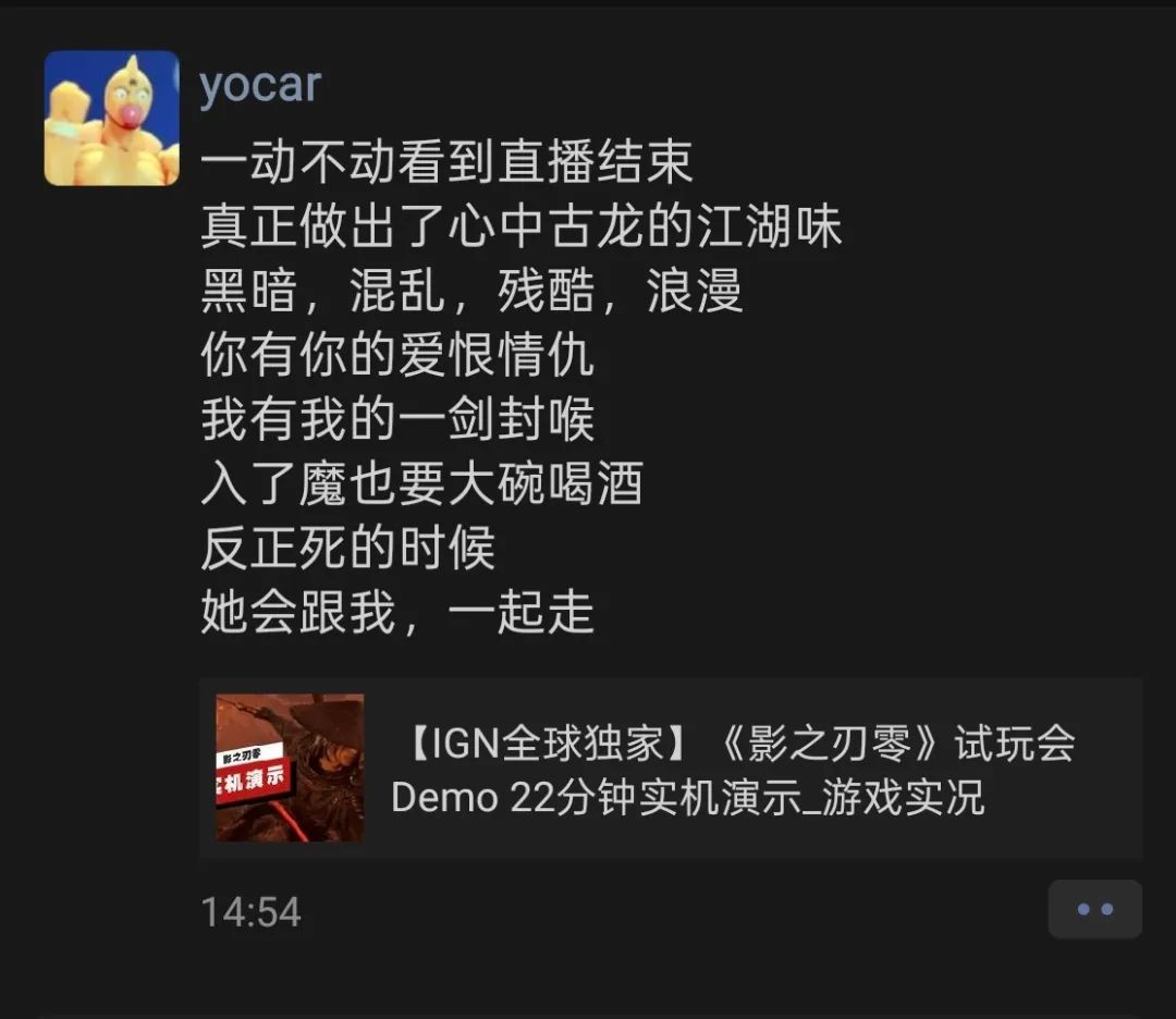 有的人此前表示自己再也不相信游戏的售前宣传,再也不会预购了,但现在又觉得「《影之刃零》它不一样」;有的人还会把腾讯看游戏的眼光搬出来,指着《黑神话:悟空》和《影之刃零》说「你看这就是腾讯投资的含金量」。