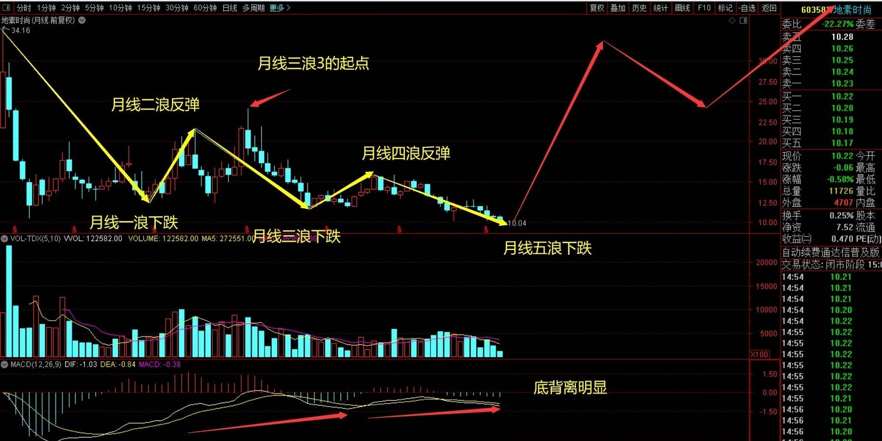 技术面:月线五浪下跌,周线五浪下跌,日线五浪下跌,都已经出现背离,月线上涨趋势要开启了,对于大资金来说这是好消息