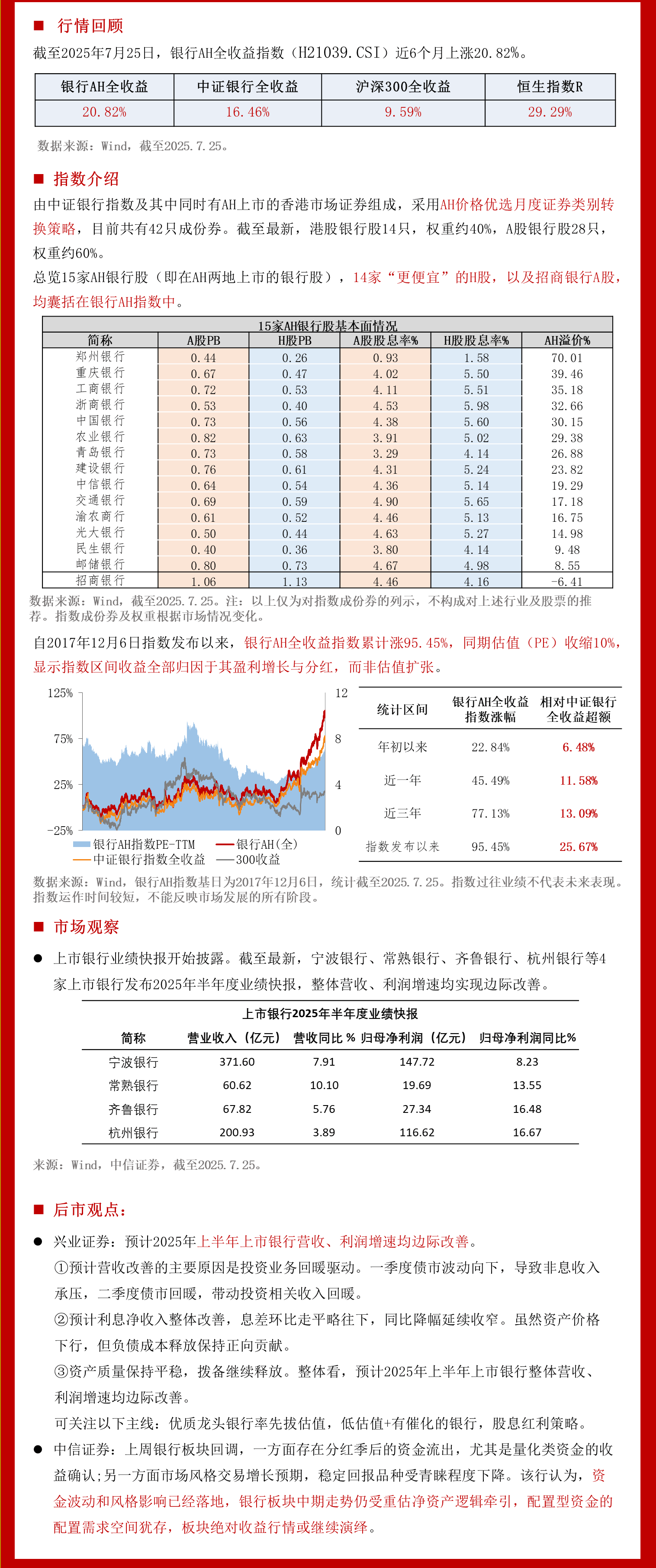 中信证券:上周银行板块回调,一方面存在分红季后的资金流出,尤其是量化类资金的收益确认:另一方面市场风格交易增长预期,稳定回报品种受青程度下降。该行认为,资金波动和风格影响已经落地,银行板块中期走势仍受重估净资产逻辑牵引,配置型资金的配置需求空间犹存,板块绝对收益行情或继续演绎。