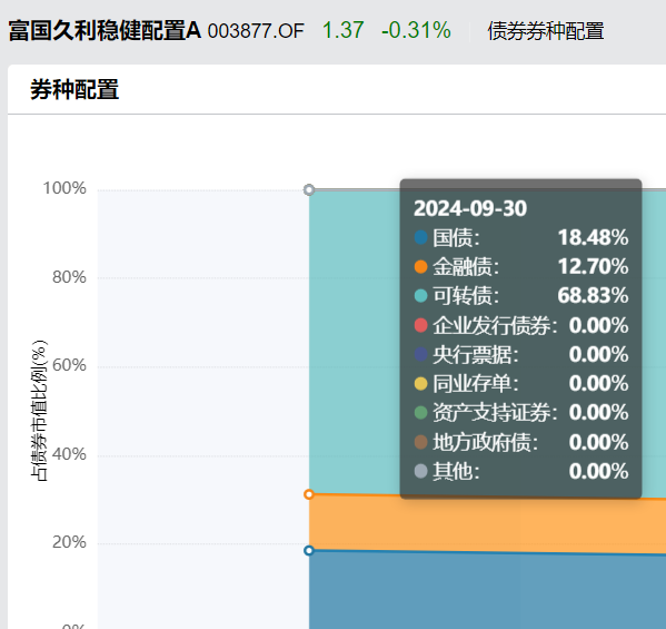 以富国久利稳健配置A为例,基金中报显示,截至2025.06.30 ,这只基金配置了72.19%的债券,24.41%的股票,1.13%的现金,还有其他资产2.27%。