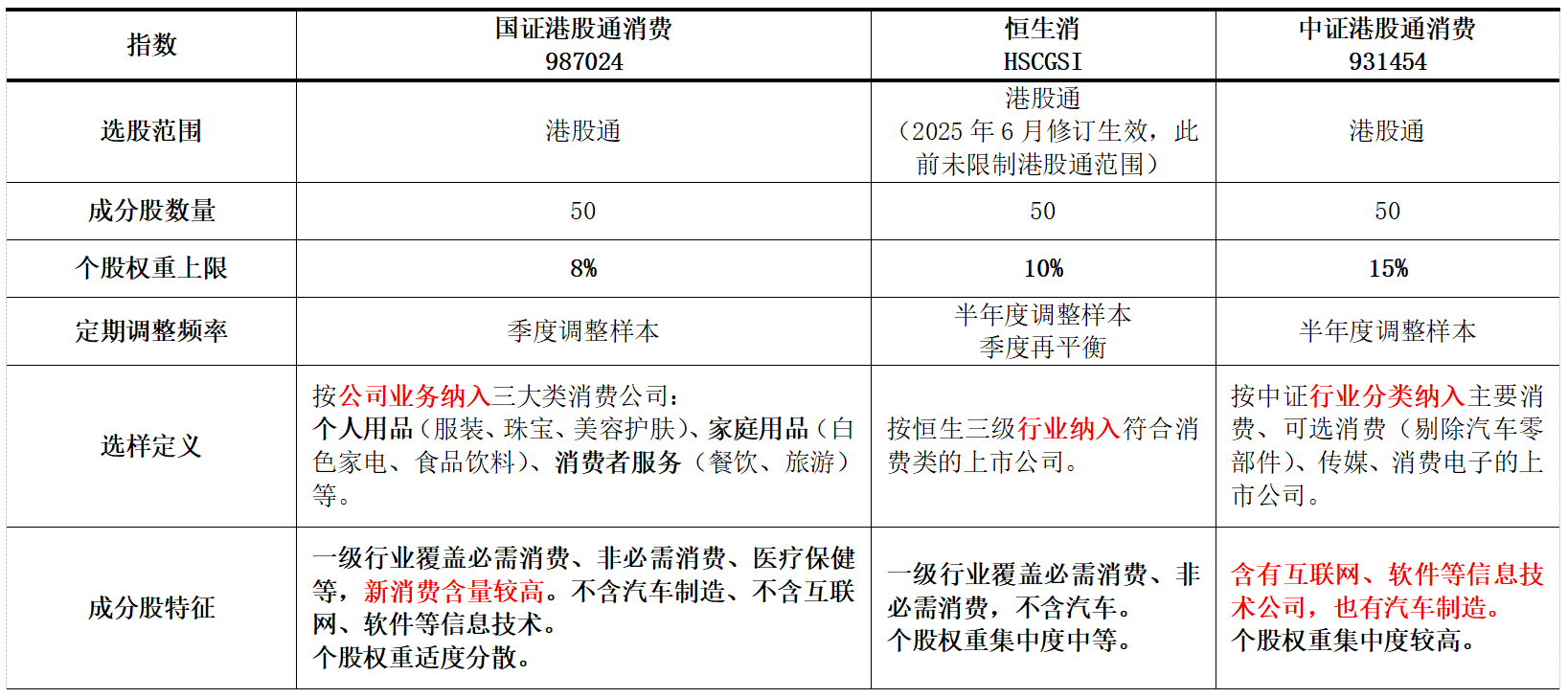 图:港股消费类指数编制方式对比