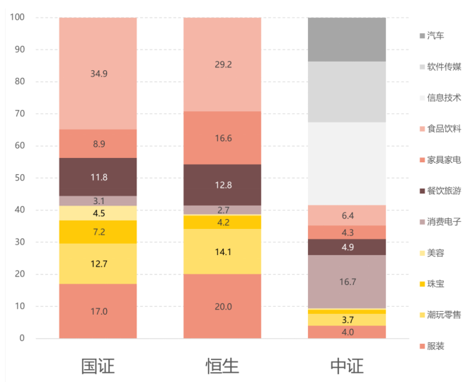 图:港股消费类指数权重分布对比