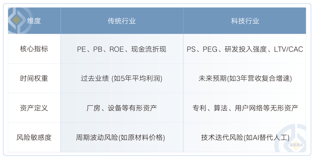 表:传统行业 VS 科技行业的估值分析差异