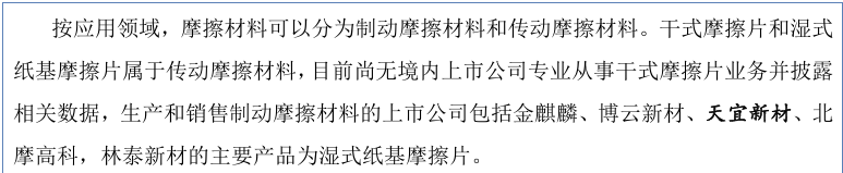 1. 公司主营业务为干式摩擦片及湿式纸基摩擦片的研发、生产及销售,并致力 于新型摩擦材料的开发应用。
