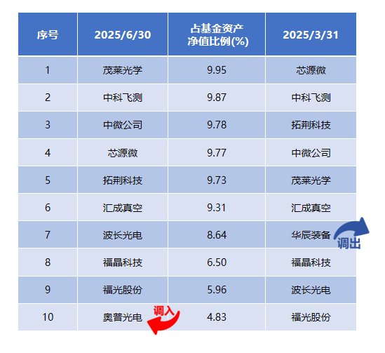 报告期内基金主要持仓以光刻机供应链和低国产化率前道核心设备的优质个股,前十大调入奥普光电,调出了华辰装备。