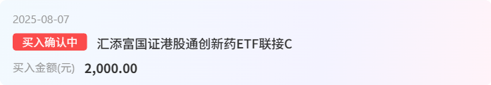 买入2000元$汇添富国证港股通创新药ETF发起式联接C(OTCFUND|021031)$