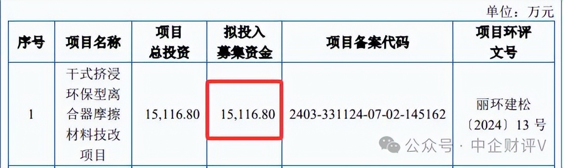 招股说明书同时披露,干式挤浸环保型离合器摩擦材料技改项目是科马材料本次募投项目,拟募集资金15116.80万元,项目建成后,可新增年产1000万片干式挤浸环保型离合器摩擦片产能。