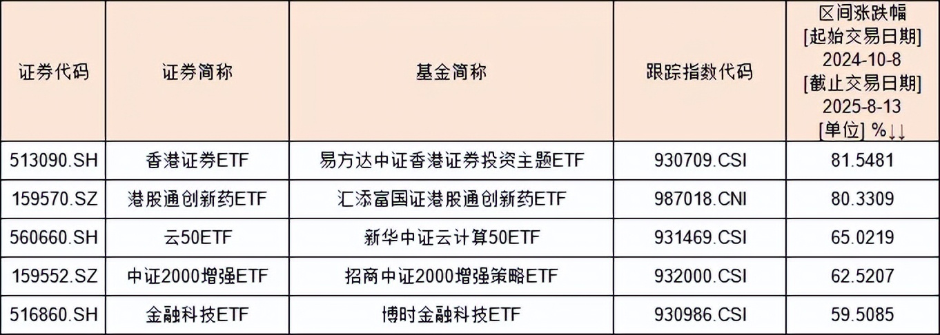 从去年最高点到8月13日,震荡市场里,哪些ETF涨幅最高呢?