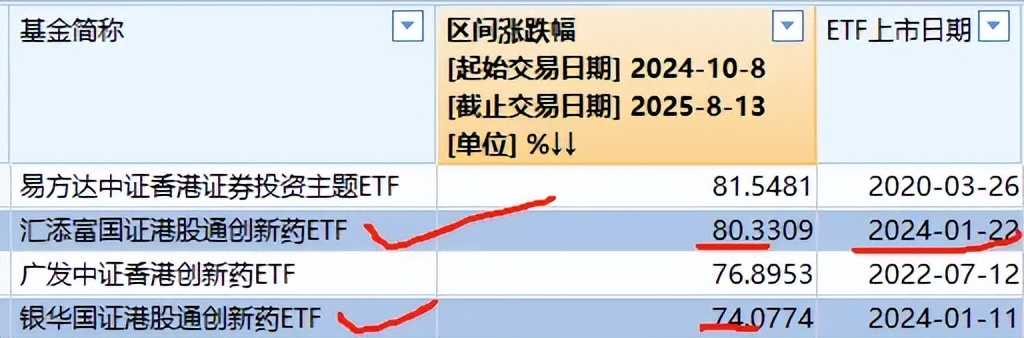 值得注意的是在港股创新药方面,同为2024年1月份成立的产品:汇添富港股通创新药和银华国证港股通创新药,在同时期的业绩竟然相差6%。