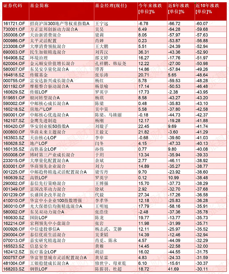 如果你选的基金不行,可能会面对灾难性的后果。就拿近10年的情况来说吧,有的主动权益类基金跌幅超过了59%,不少跌幅超过50%!