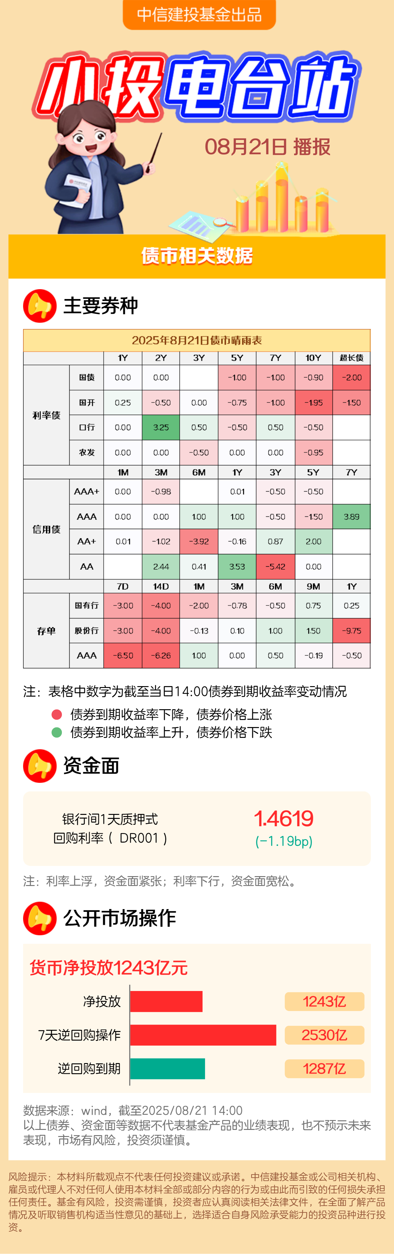 截至2025/8/21下午两点,债市盘中天气:
