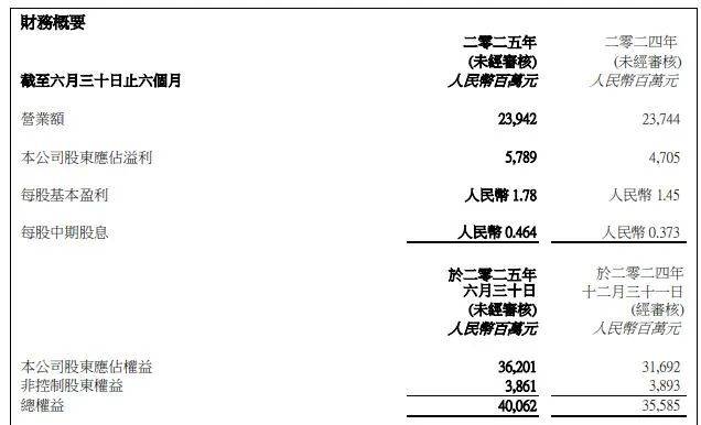 业绩方面,华润啤酒的啤酒业务于2025年上半年的未经审计营业额为人民币231.61亿元,同比增长2.6%。