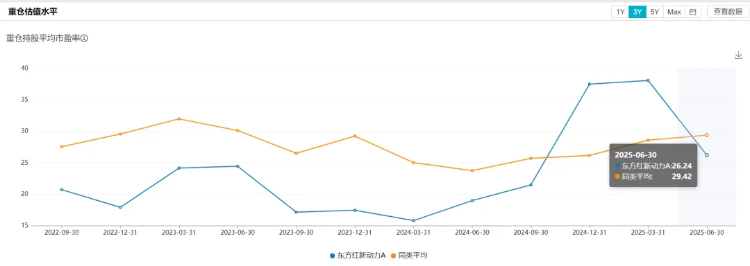 重仓股平均市盈率方面,最新一期(20250630)是26.24倍,低于同类平均的29.42。