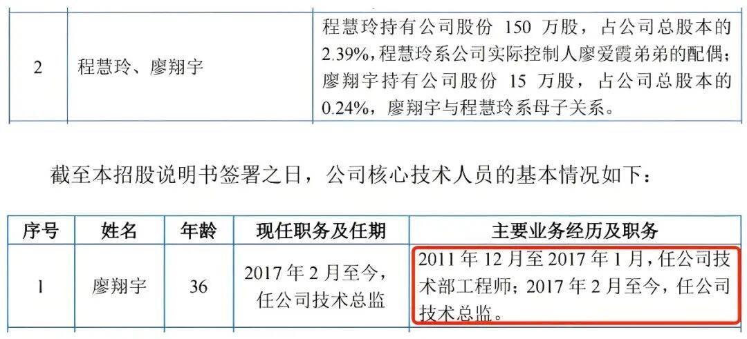 此外,程慧玲的儿子廖翔宇持有公司15万股股份,占总股本的0.24%。廖翔宇今年36岁,2011年时,年仅22岁的廖翔宇就加入公司担任技术部工程师,目前担任科马材料的技术总监。