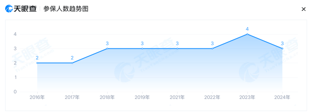 天眼查显示,2016年以来,宁波元恒橡塑的参保人数一直没有超过4人。