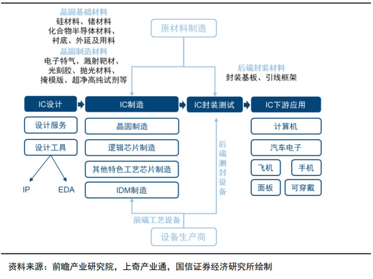 在整个半导体芯片产业链中,大致可以分为设计、制造、设备、材料、封测这几个部分。