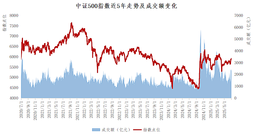 中证500指数近5年走势及成交额变化