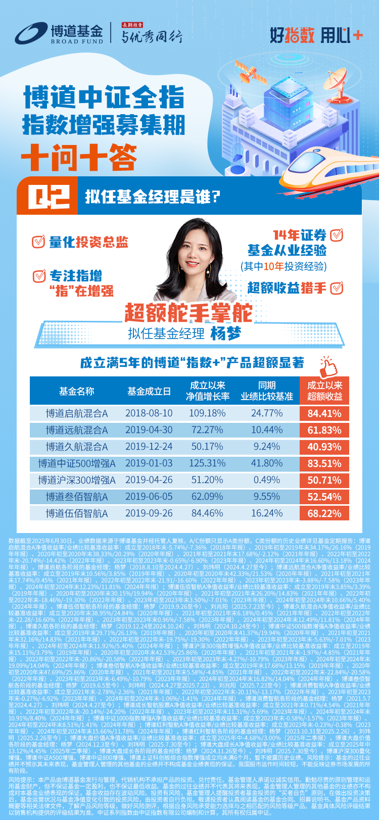 拟任基金经理杨梦,博道量化掌门人,“指数+”系列产品超额显著!
