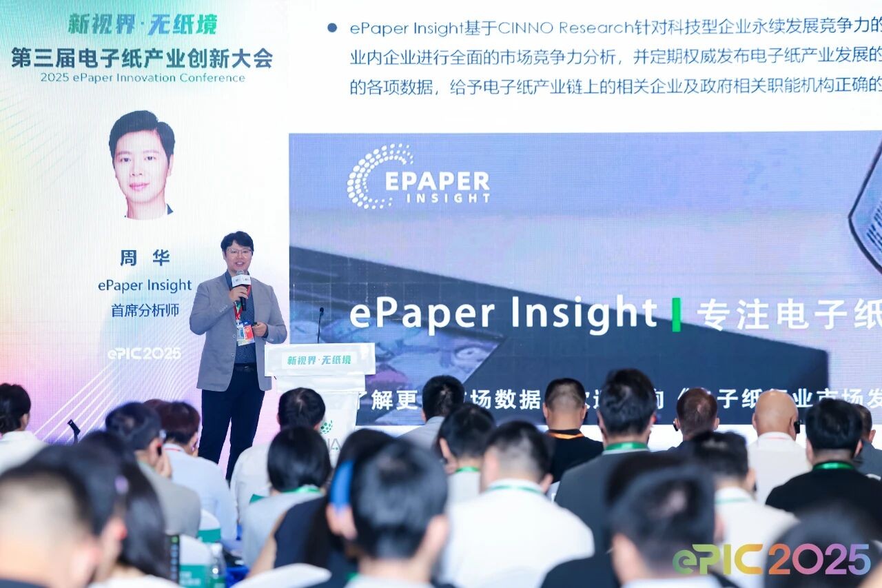 CINNOePaper Insight 首席分析师周华带来《2024-25 年电子纸产业发展新趋势与新格局》主题演讲,凭借丰富的研究经验,从多维度解析了电子纸产业的未来发展方向。